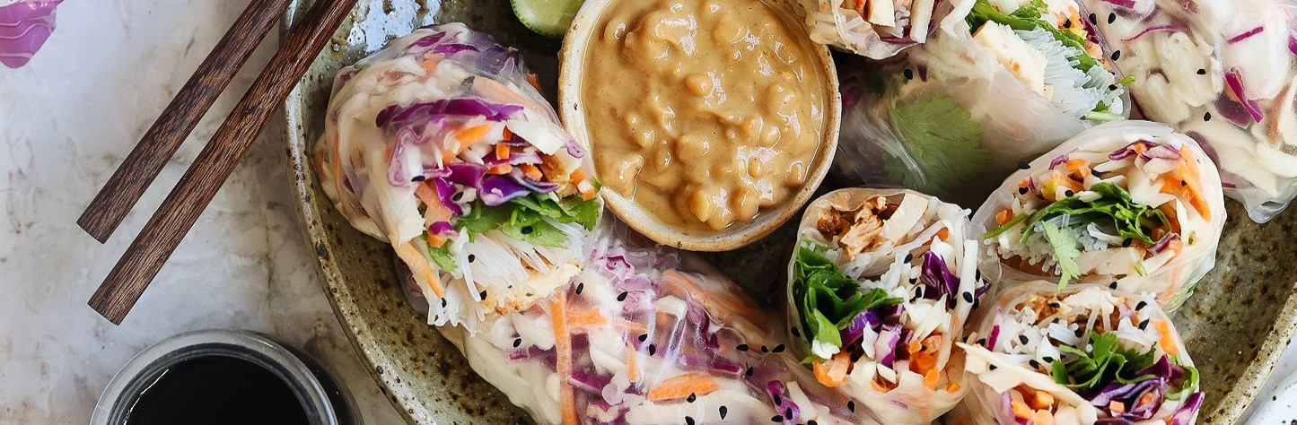 3. Assemble the rolls: Lay the softened rice paper on a clean surface. Add a small handful of LeaderBrand Ranchslaw, herbs, noodles (if using), and your chosen protein.
